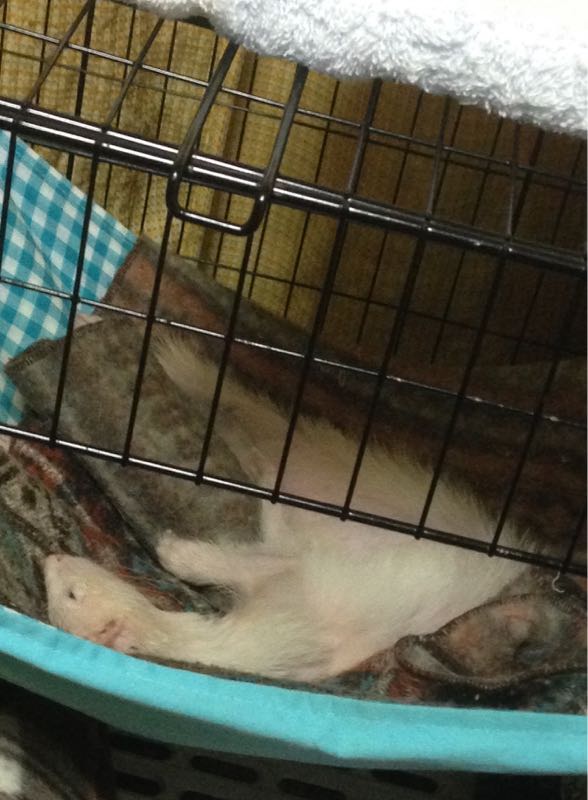 フェレットさんのゲージの上に保冷剤を置いてみましたo(^_^)o