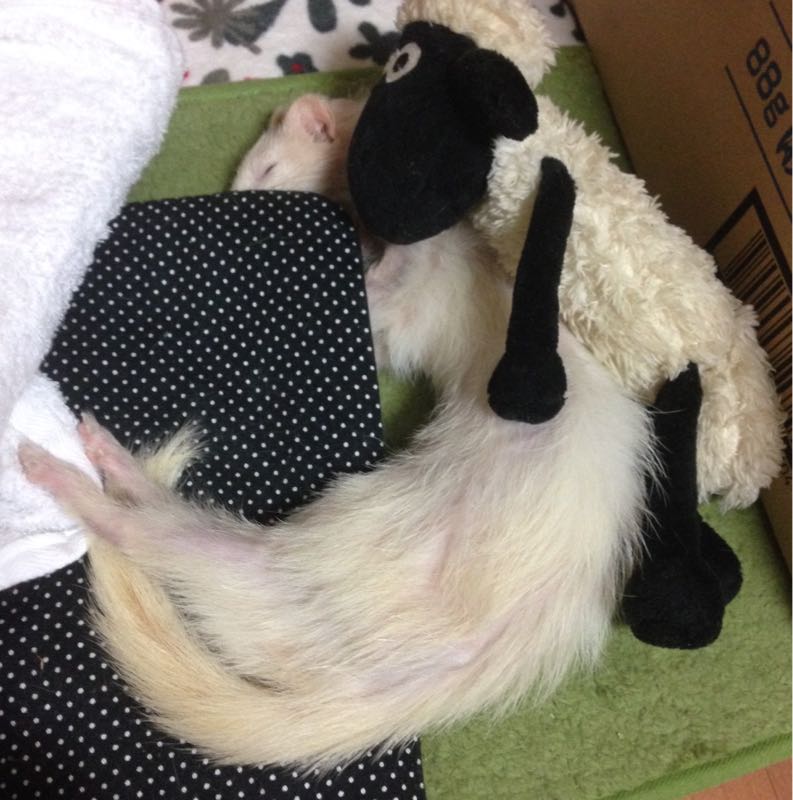 今晩のフェレットさんo(^_^)oぬいぐるみと遊んでおりまして、そのまま寝ております( ´ ▽ ` )ノ