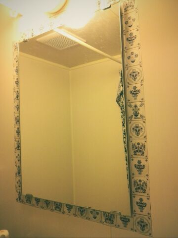 室内とあんまりマッチしなかったのでお風呂のドアと鏡回りに張り直した。