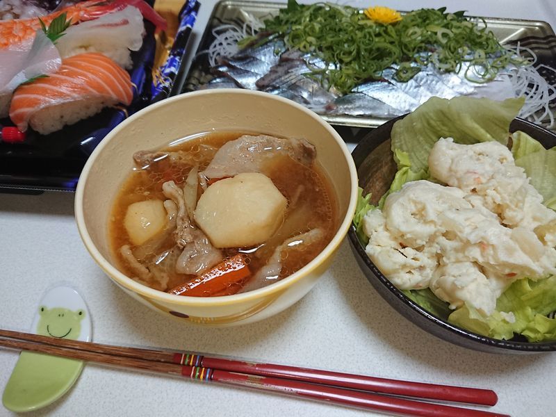 まんまと大将の策略にハマり、お刺身とお寿司を買っちゃいました
