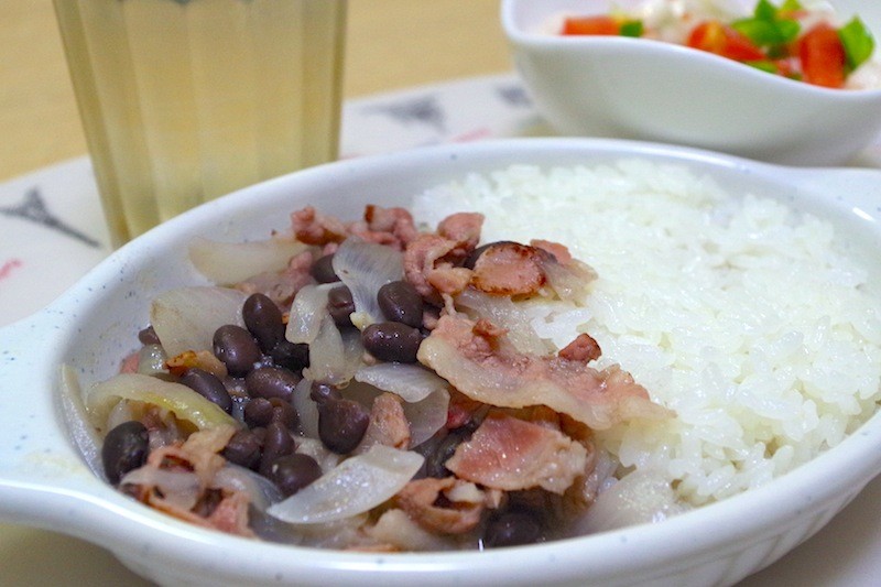 豚バラ肉やベーコンと共に黒インゲン豆を煮込みました。