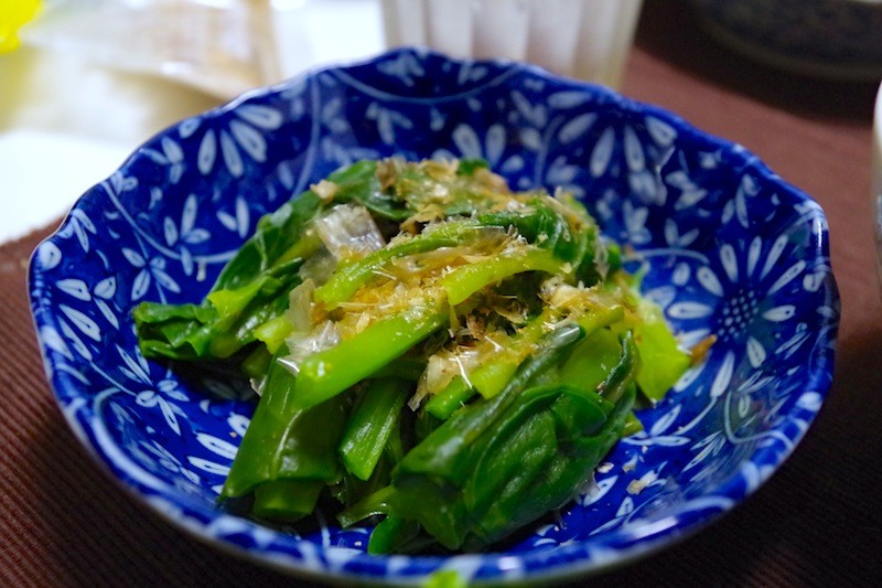 茹でたツルムラサキにおかかとポン酢をかけていただきましたが、そのままでも美味しいです。