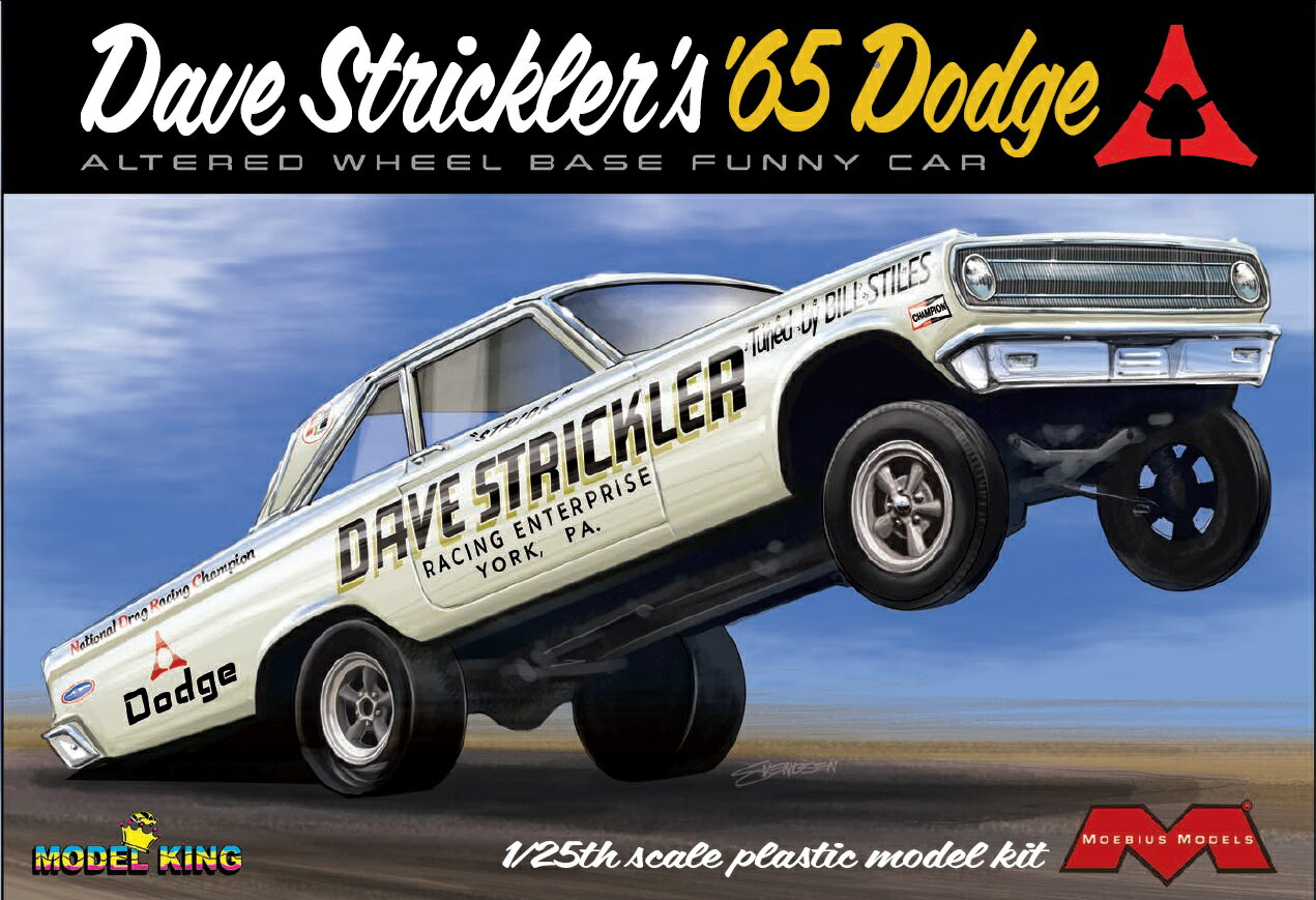 モデルはアメリカのドラッグレースで人気を集めたドライバー、デイブ・ストリックラーがドライブしたマシン、1965年ダッジ アルタード ホイールベース ファニーカーを1/25スケールで再現したプラスチックモデル組み立てキットです。