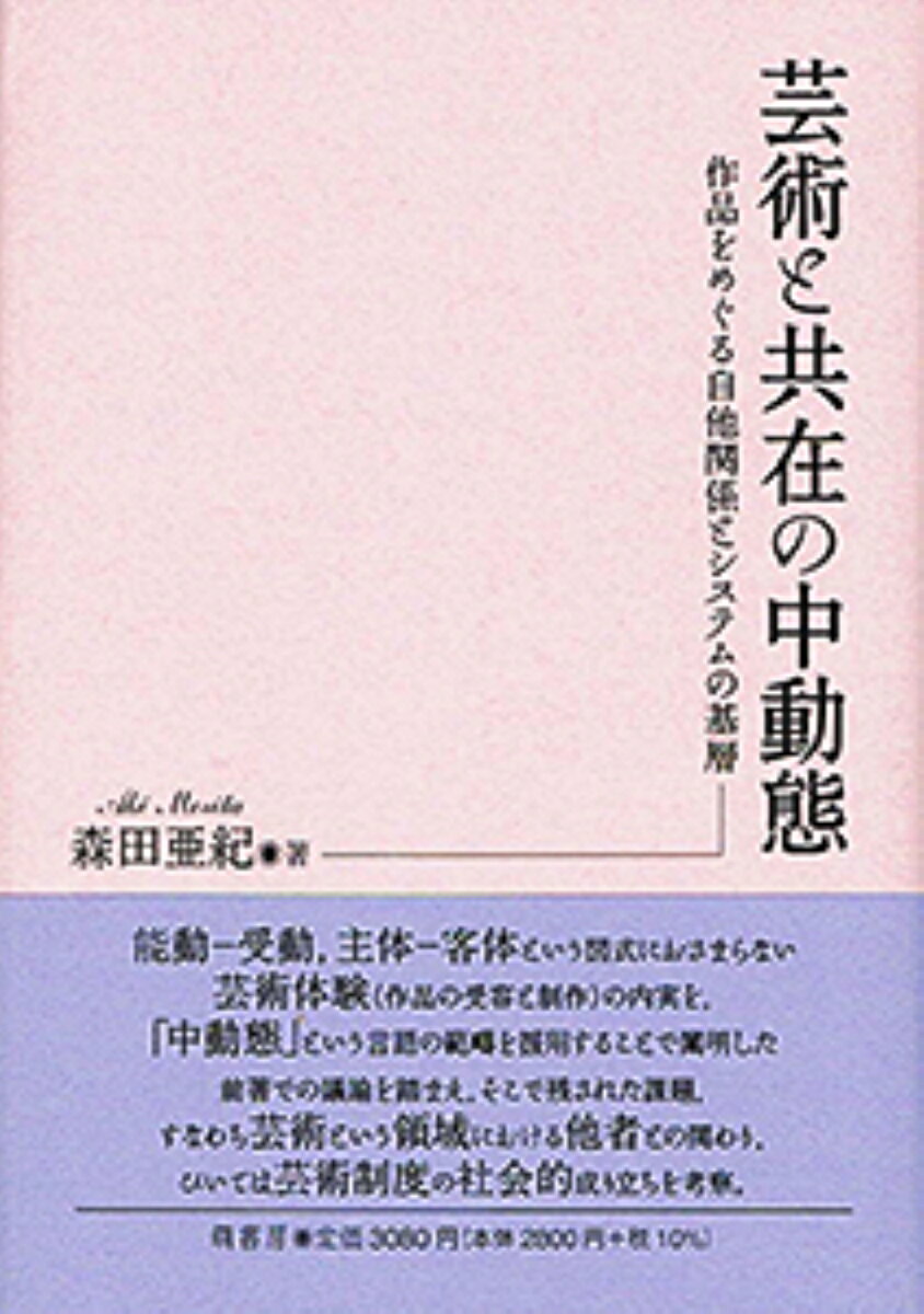 能動ー受動、主体ー客体という図式に収まらない体験のあり方を、中動態という別種の範疇を用いて、いわば別の枠組みで浮かび上がらせて考察。前著『芸術の中動態ーー受容/制作の基層ーー』で問題にした芸術体験は、受容であれ制作であれ、(事後的に見れば)作品との関わりであるが,本書では、残る問題として、芸術という領域において他者と関わる体験、そこからさらに芸術制度の社会的成り立ちについて分析。そこにおいても、中動態という範疇で捉えうる事態が基礎的場面に見出される。