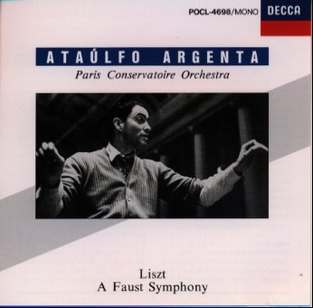58年に44歳で亡くなったスペインの指揮者アルヘンタがパリ音楽院管の特長的な音色を生かしきっての「ファウスト交響曲」。色彩豊かな、絵画的な演奏であり、現代のオーケストラからは失われてしまった音色の記録なのかもしれない。モノながら好録音。