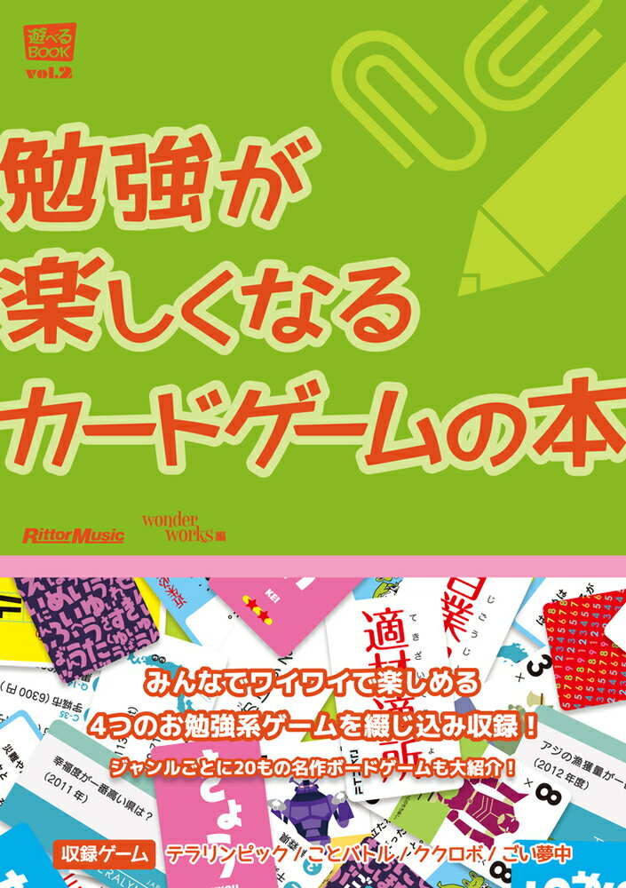 vol.2『勉強が楽しくなる カードゲームの本』は、コトバや数字を使ったお勉強系ゲームを収録。脳のトレーニングにバッチリです。また、取り外し可能な冊子には、各ゲームの分かりやすいルール説明はもちろん、コミュニケーション系のお薦めボードゲームも徹底紹介。アナログゲーム初心者にも最適のパッケージです。家族で、学校で、仲間の集まりで、ぜひお楽しみください!