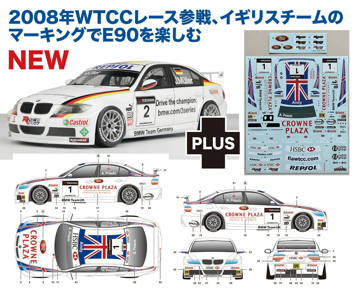 このキットでは同じ2008年WTCCでBMW・UKチームのアンディ・プリオールが使用したマシンのマーキングが楽しめるデカールセットを用意しています。