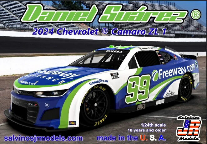 モデルは2024年NASCARにトラックハウス レーシングから参戦するダニエル・スアレスがドライブするシボレー カマロをサルビノス・モデルがオリジナル金型で再現した1/24スケールのプラスチックモデル組み立てキットです。