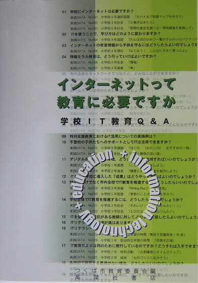 つくば市の学校IT教育の特徴の一つは、ITは子供たちの体験活動を支援するための道具としている点である。ある中学校では、障害者福祉施設での体験活動をコンピュータでまとめ、テレビ会議を使って他校に発表するなどの活動を行っている。もう一つの特徴は、eラーニング学習である。現在、子供たちの学力の低下がマスコミ等で叫ばれているが、教科の基礎・基本を確実に身に付けるための学習の一つとして、このeラーニングの学習を利用している。教科書に準拠した教材を自分のペースで学習できるため、苦手なところは繰り返し行えるし、どんどん先の学習を行うこともできる。本書は、このようにITを子供たちの学力向上に利用しています。本書は、つくば市での取り組みで培われたIT教育成功のノウハウを分かりやすく紹介している。文部科学省主催第4回インターネット活用教育実践コンクール「内閣総理大臣賞」受賞。