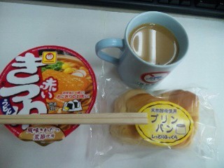 カレーパン、紅茶ヨーグルト、ゆで玉子。