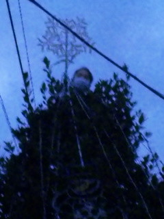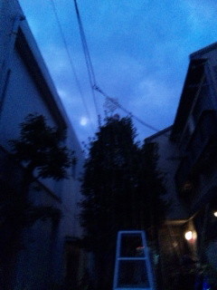 物置の上に梯子を乗せててっぺんから顔を覗かせました。