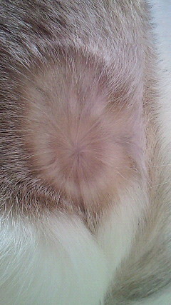 所見では細胞腫ではないようだが、腫れて赤みがあるのでステロイド治療。