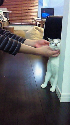 隣りのダンナが腕を伸ばしてきて、猫をさらって行った。