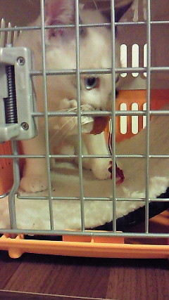 先生が半笑いで「じゃあキャリーごと診察台に載せて下さい」 (´゚ c_,゚`)プッ