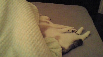 猫は自分からベッドに上がって来て、ベッタリとくっ付いて寝始める。 (´゚ω゚`)