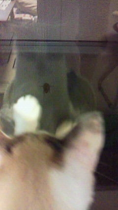 ゆっくり動いてる虫や停まってる虫なのに、猫パンチを出さない。 (ノД`)シクシク