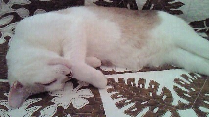 自分は朝ご飯でお腹が一杯になって、幸せそうに寝ちゃうんだよね。 (ノД`)シクシク