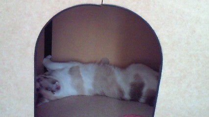 フテ寝のように、キャットタワーの下に引き篭もってしまった。