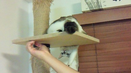 ダンナがタワーの上で待ってる猫のお相手をしてあげてた。 ~(=^・。・^)ノ"