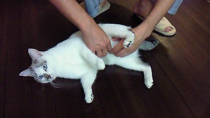 今までも診察台に載せると即逃亡をはかっていて、抱こうにもニョロっと逃げる。