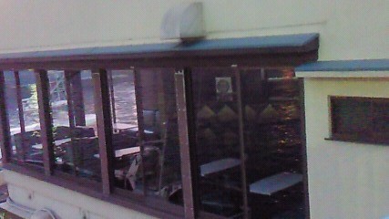 お店は2つの建物があるけど、角の2面ガラスで景色のよく見える方は
