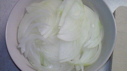 玉ネギとチキンコンソメスープの素があれば、家で作る。