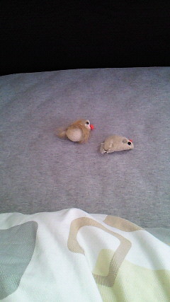 昨夜、猫がネズミのオモチャを咥えて来て 私の膝にポトリ。