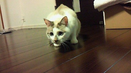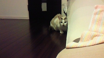 私が座椅子の影からパッと携帯向けたら、少し近付いてた。