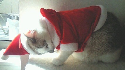 せっかく着せたので他に何枚か撮ってみた。それほど嫌そうじゃないし。