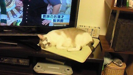 エアコンの暖気の吹き下ろしを 体中に受けてご満悦♪