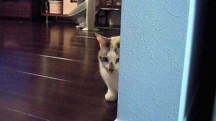 普段なら玄関まで迎えに出て来る猫が、一度玄関に来てから逃げて行った。