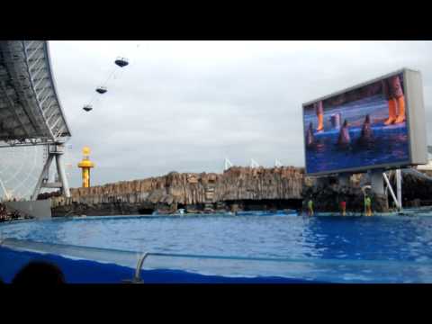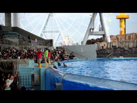 娘連れで名古屋港水族館。今日のイルカショーの1回目を見せてきた。