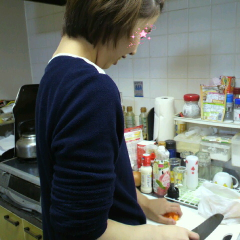 夕べの残り。トマトとニンニク醤油と塩とこしょうとコンソメと色々ブレンドしたらなかなか複雑で美味しい味になったよ!(昨日の夕飯だった)