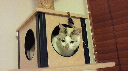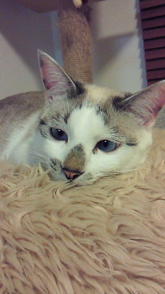 爪研ぎが熊みたいに激しいブルー。もうキャットタワーの柱限界。