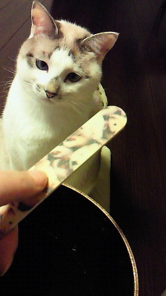 私が爪にヤスリを掛けてると、興味深そうに見てる。(^p^)