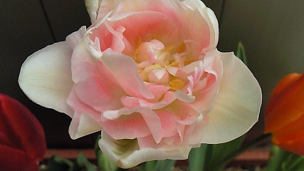外のプランターに植えたチューリップがほぼ咲き揃いました。 (*゚ー゚)