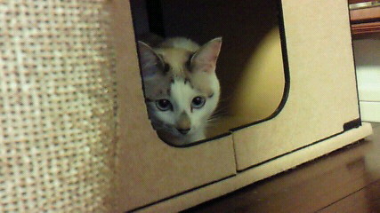 夜中にドアをカリカリして部屋に入って来て、ブルーをビビらせてた。