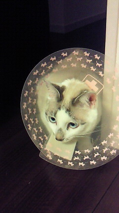 昨夜、猫に久々にカラーを取り付けて、スプレーしました。外出させる予定だし。