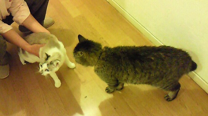 めげずに「朝メシくれー!」といつものようにスリスリしてた。(反省なんか無いよ)