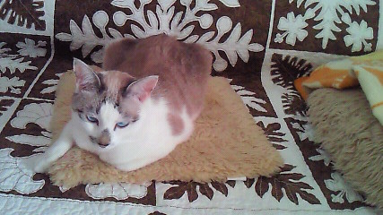 蒸し暑くなったからか、普段使用してるファーのクッションを避けて…