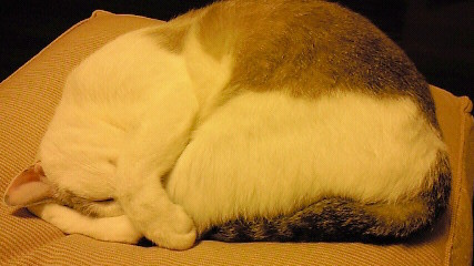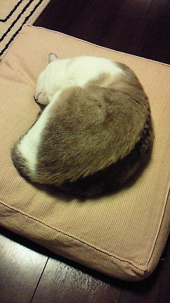 でも、何でワザワザ後ろ脚を抱え込み宙返りみたいなポーズで寝るのだろう?