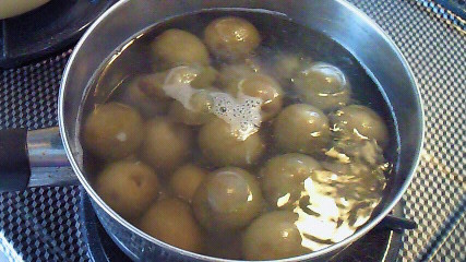 5分ほど茹でこぼして、アルコール分を飛ばす。