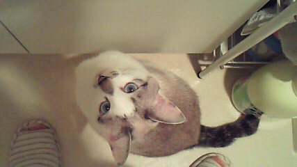 …何かシツコク冷蔵庫の下に前足突っ込んでる。うるさいから取り出してみると