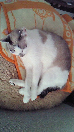 昼間は夢うつつな状態で、少し起きて毛繕いしたり アクビしたりしてる。