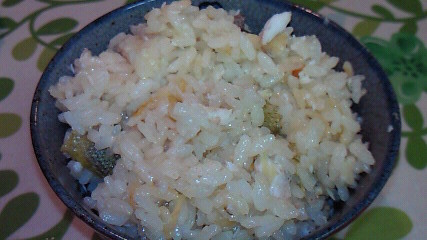 あえて皮も入れた。白身だから鯛めしに近いけど、臭みが無いので