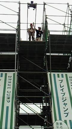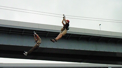 左)登るダンナ 右)飛び降りるダンナ、私もやりましたが、ダンナが撮ってない。