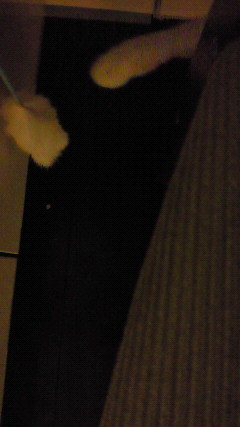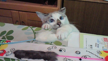 「アッーー!」油断したら、思い切り前足でオモチャを手繰ろうとしてる!Σ(゚∀゚*)