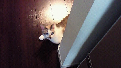 人間が晩御飯を食べ終わると、壁から顔を出して遊んで貰いたそうに見てる。