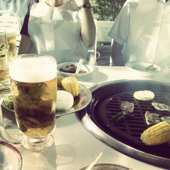 ビアガーデンでビール部。かーらーのー、カラオケ。