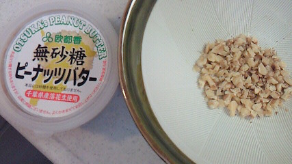 軽くローストしたクルミを荒く刻む、そこにピーナッツバターと砂糖を入れて